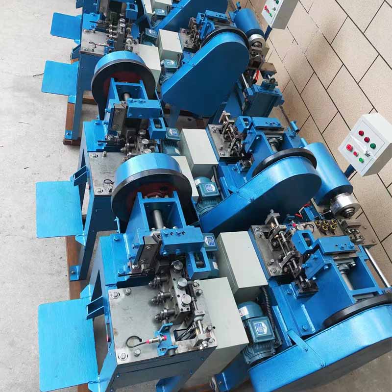 Samodejni stroj za izdelavo vzmetnih podložk za vijake Lastnosti: visoka stopnja avtomatizacije, ni potrebe po človeškem posredovanju; velika prilagodljivost, lahko se hitro prilagodi proizvodnji vijakov in vzmetnih podložk različnih specifikacij s spreminjanjem kalupov; odlična stabilnost, z uporabo pogonskega sistema in krmilnega sistema, lahko ohranja stabilno proizvodno stanje med dolgotrajnim delovanjem.