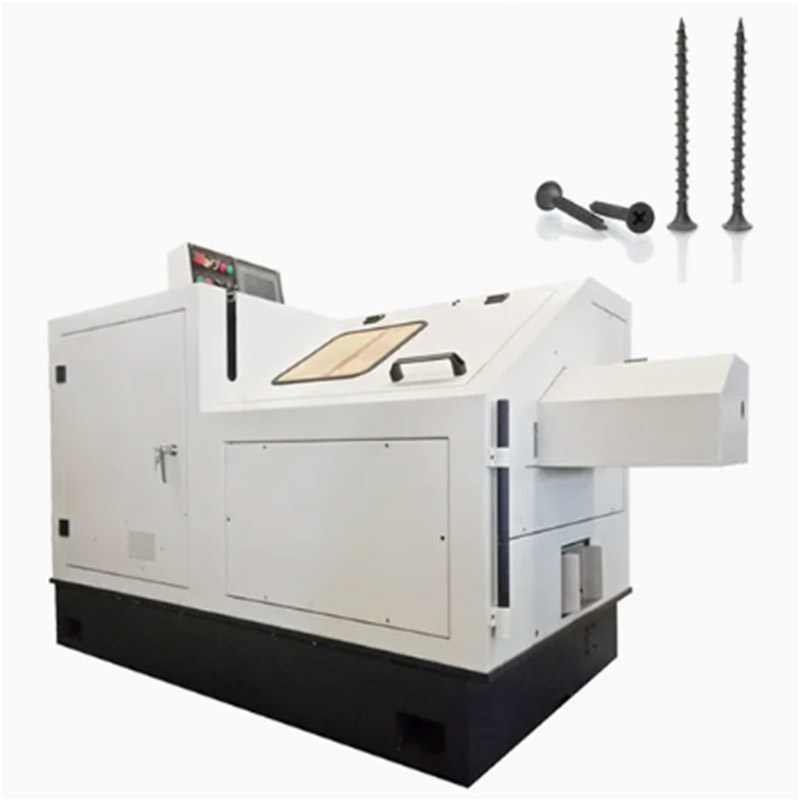 Stroj za izdelavo blagega jeklenega vijaka je zasnovan posebej za proizvodne vijake iz blagega jekla. Žico z nizko ogljikovo jekleno žico nastavite v stroj, jo razrežite na prednastavljeno dolžino, nato pa uporabite kalup, da pritisnete vijačno glavo in navoje razvaljajte skozi mehanizem navoja.