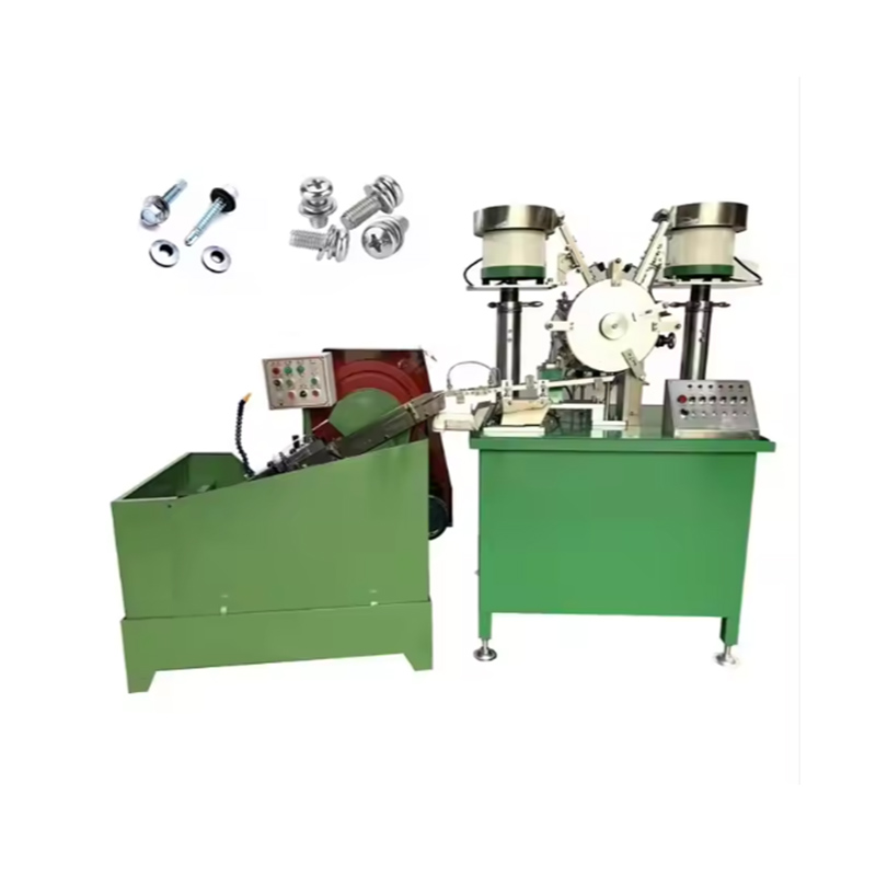 Stroj za sestavljanje vijakov je sestavljen iz vibrirajoče plošče, ločilnika vijakov, cevi za dovajanje žebljev, vodilne tulke itd., ki lahko samodejno dokonča postopke prenosa, sestavljanja in zategovanja vijakov in podložk.